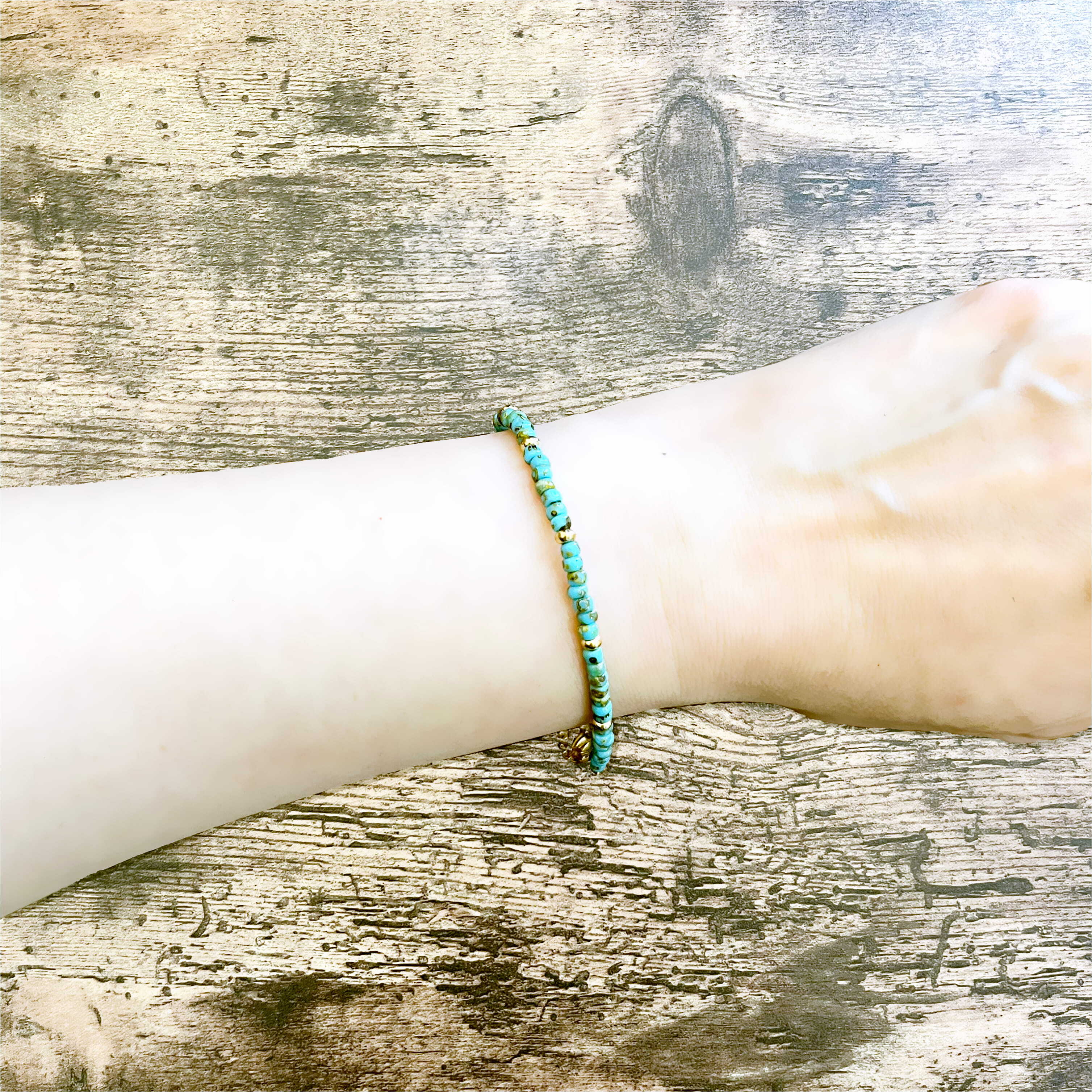 小さなアベンチュリンをギュッと集めた細身のブレスレット。