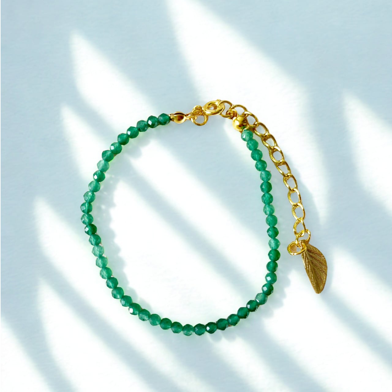 【健康】アベンチュリンのブレスレット(葉っぱのチャーム付き)
